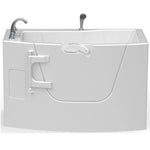 Constructed with a 68-gallon water capacity, reverse plumbing compatibility, and available Left or Right drain configurations, this tub adapts to a wide range of installation requirements. The included Roman deck-mounted thermostatic mixing valve—crafted from solid brass with a polished chrome finish—ensures precise water temperature control and long-term durability. A handheld shower wand supports hair and upper-body washing with ease.